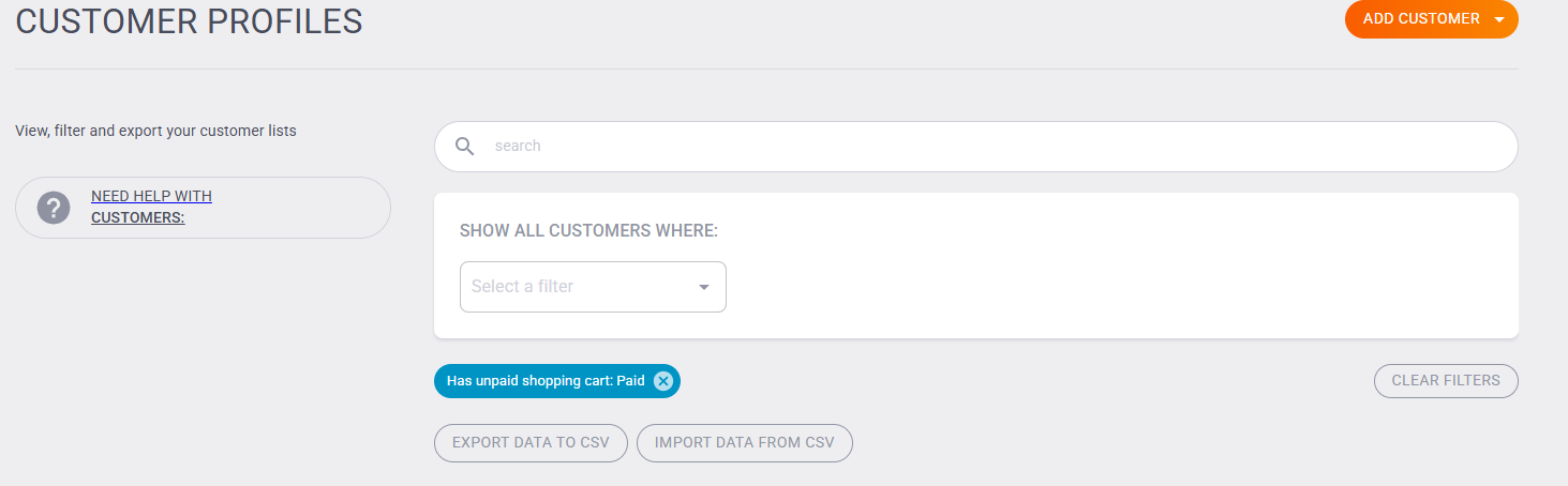 Once your customer list is filtered, click the Export Data to CSV button.