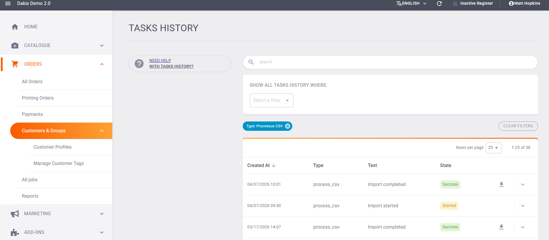 3. Wait for the process to complete. Once a success notice appears, click the download arrow to save the CSV file to your computer. That's it you're done, exporting your CSV file containing the customer information you needed!